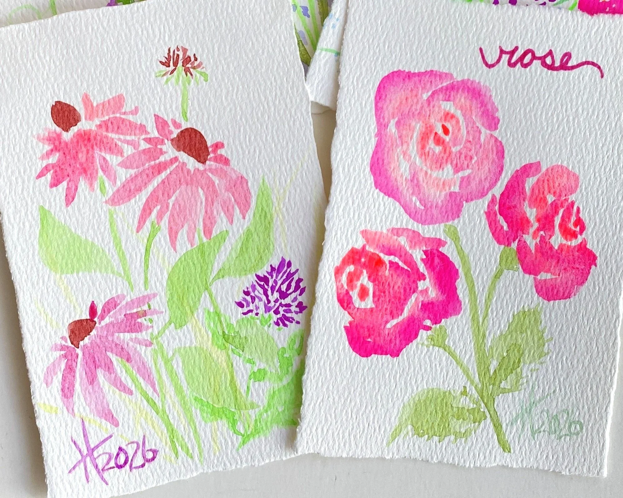 Luminous watercolor floral paintings on watercolor paper by Tristina Dietz Elmes. At the time of writing this article, the original paintings are available on my eBay Shop HERE.