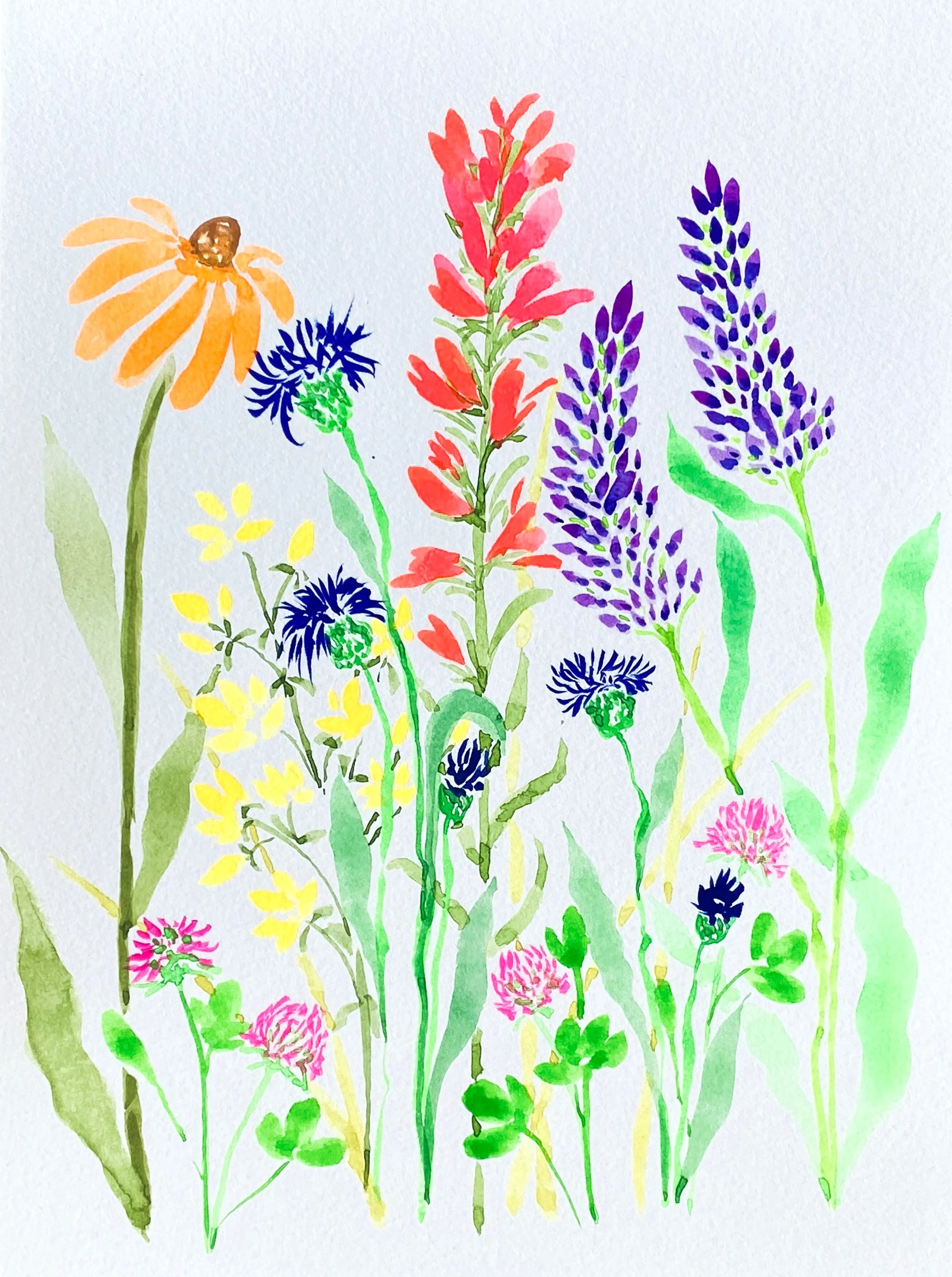 Wildflowers watercolor on paper by artist Tristina Dietz Elmes.