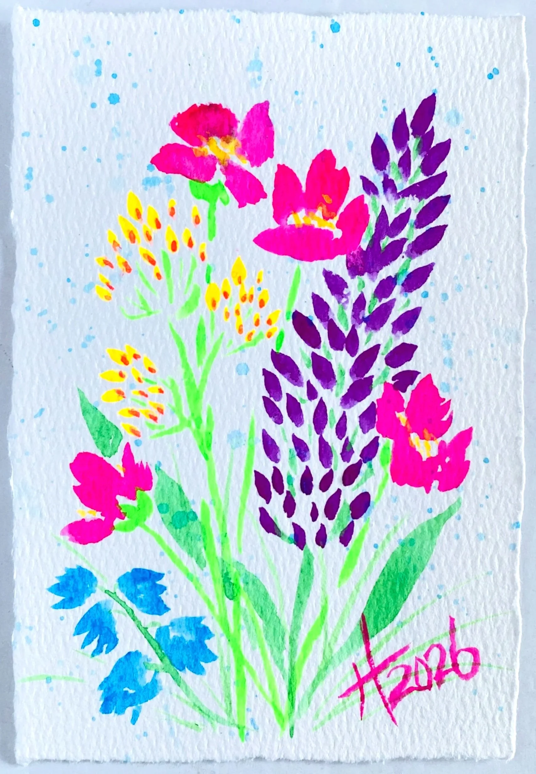 Luminous watercolor “Wildflowers 8” floral painting on watercolor paper by Tristina Dietz Elmes. At the time of writing this article, the original painting is available on my eBay Shop HERE.