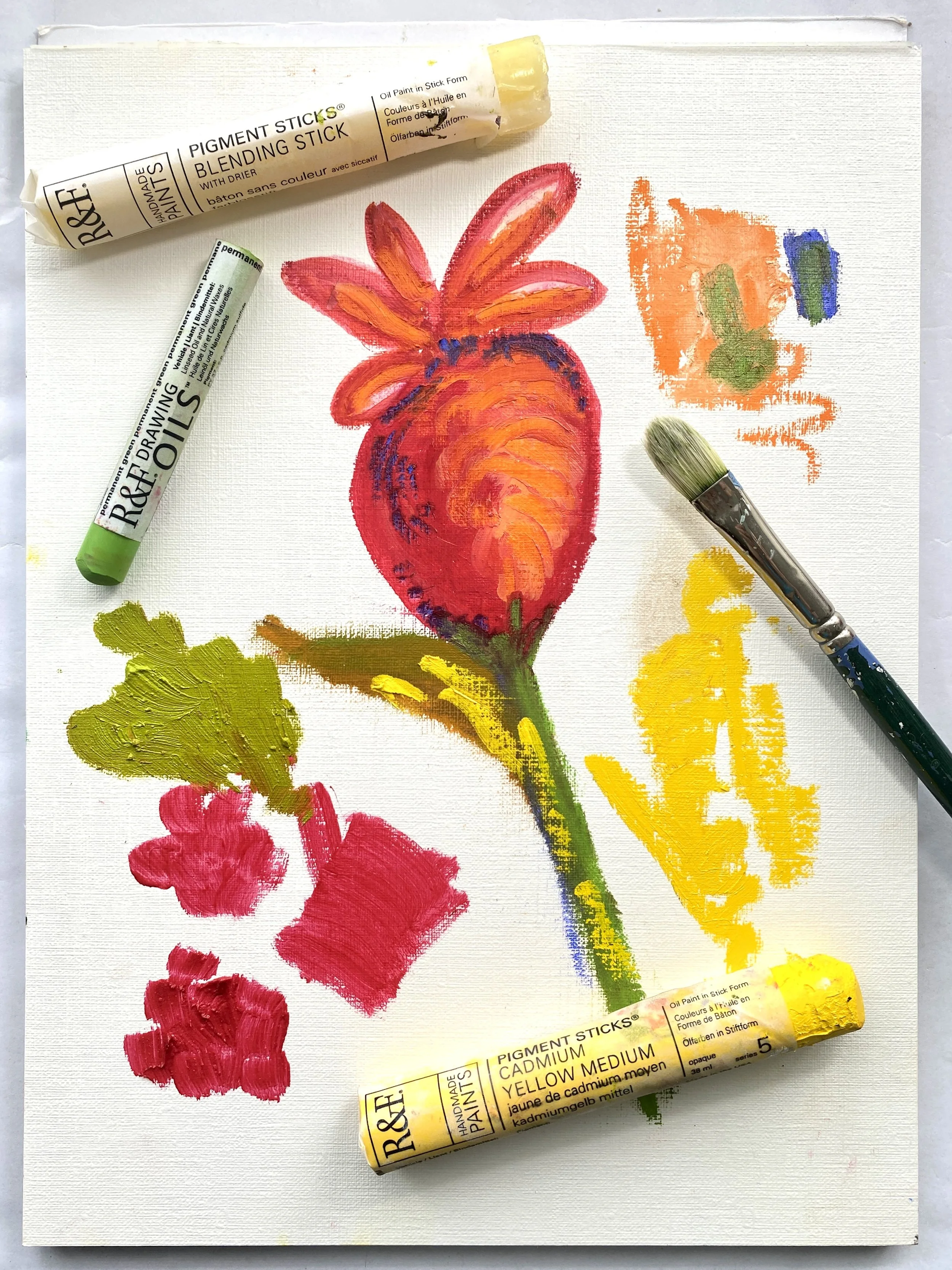 In this article I share about the joy of sketching with R&F’s new Drawing Oil Sticks and all about using their Oil Paint Pigment Sticks. These innovative tools help artists to make bold strokes and interesting marks with oil paints.