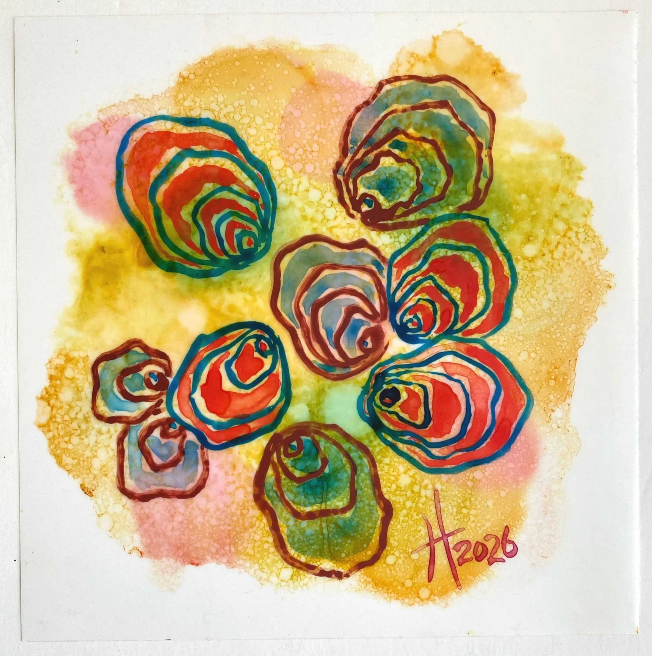 “Gathering” mixed media alcohol inks, India Inks and watercolor on translucent Yupo paper by artist Tristina Dietz Elmes. At the time of writing this article, this frame ready artwork is available on my Etsy Shop HERE.