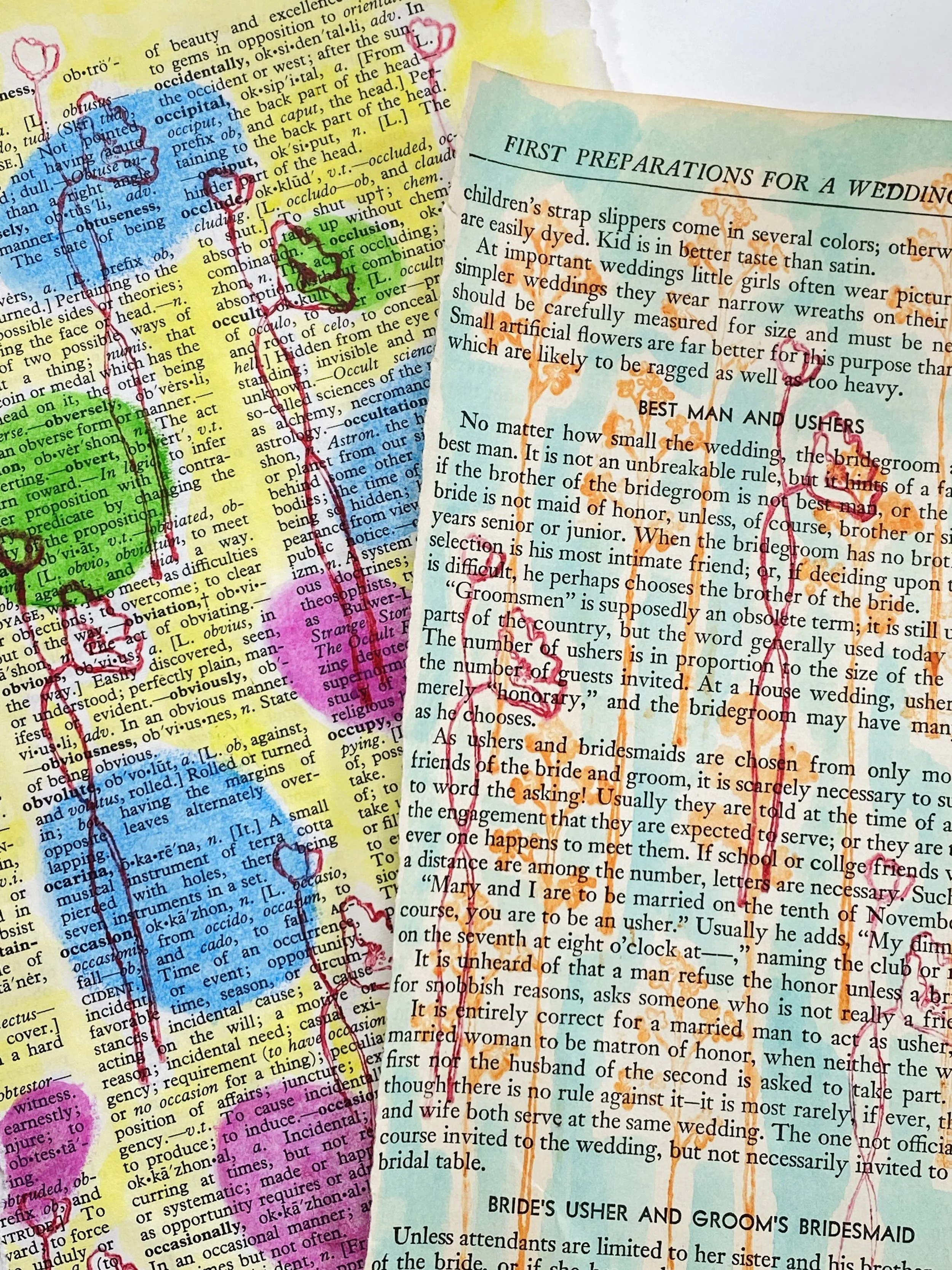 After stamping onto papers, I find it helpful to use the indirect painting method to fill in the areas around the stamped images.