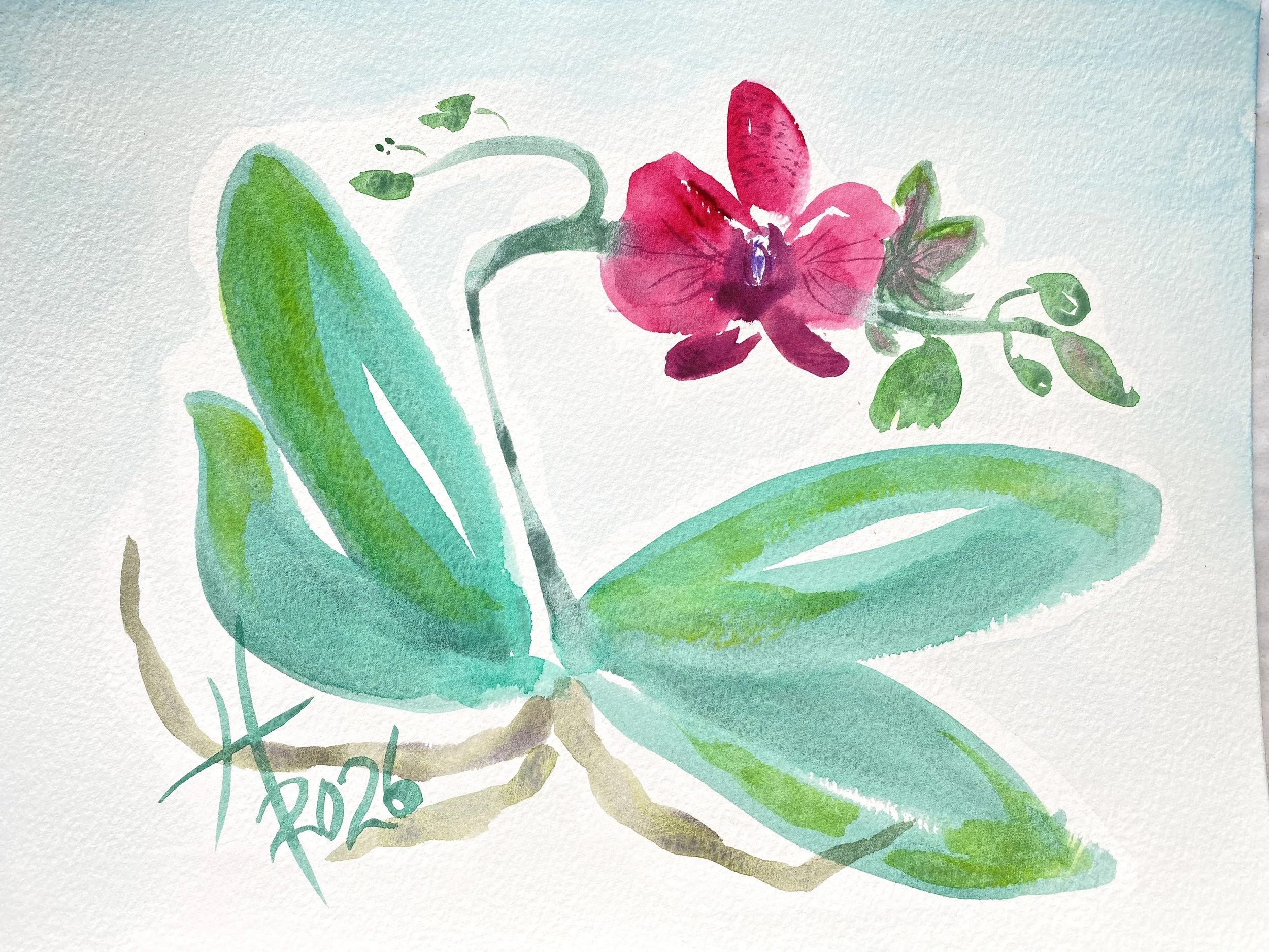 Ruby Phalaenopsis Orchid watercolor painting on 100% cotton paper by artist Tristina Dietz Elmes. At the time of writing this article, this artwork is available in my Etsy store as the original watercolor painting.